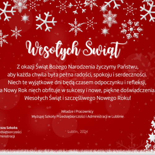 Uprzejmie informujemy, iż w długi weekend (4–6 stycznia 2025 r.) Wyższa Szkoła Przedsiębiorczości i Administracji będzie zamknięta. Zapraszamy od 7...czytaj dalej