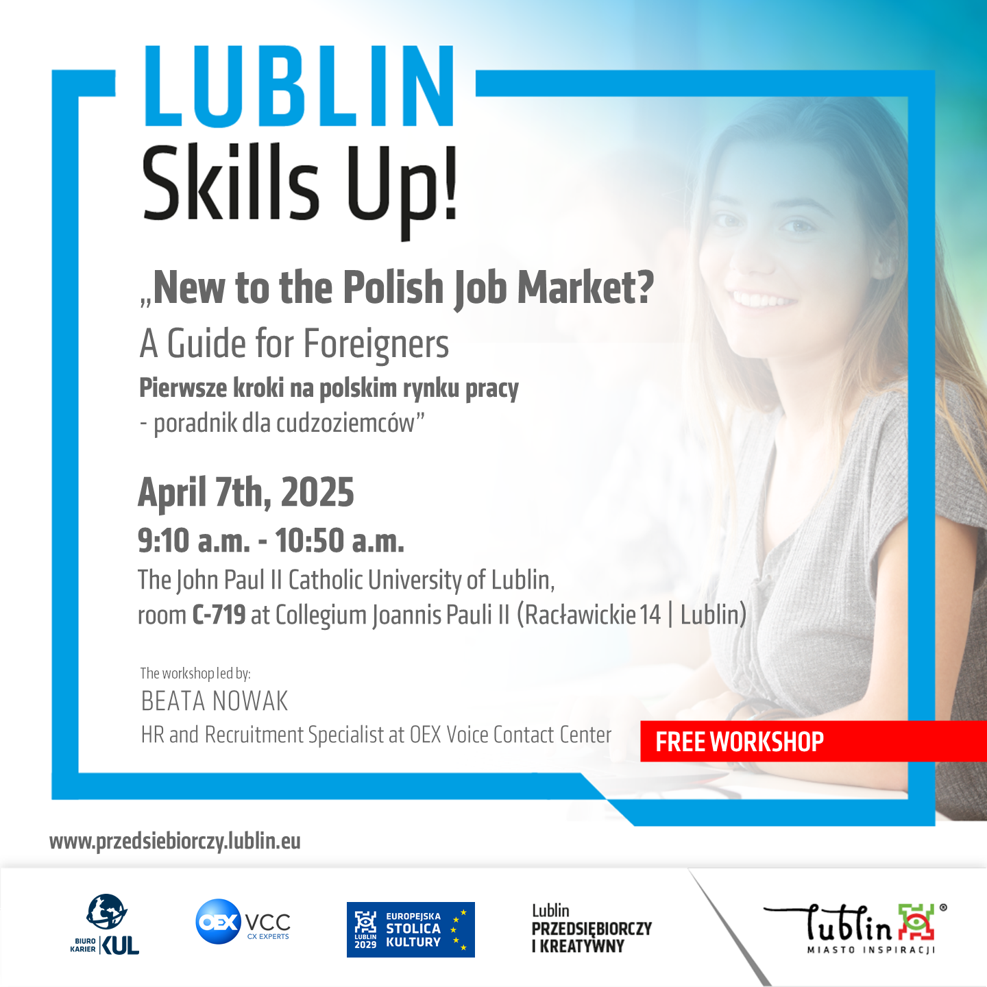 Warsztaty organizowane są w ramach inicjatywy Lublin Skills Up! we współpracy z OEX VCC oraz Biurem Karier (Katolicki Uniwersytet Lubelski Jana Pawła II).