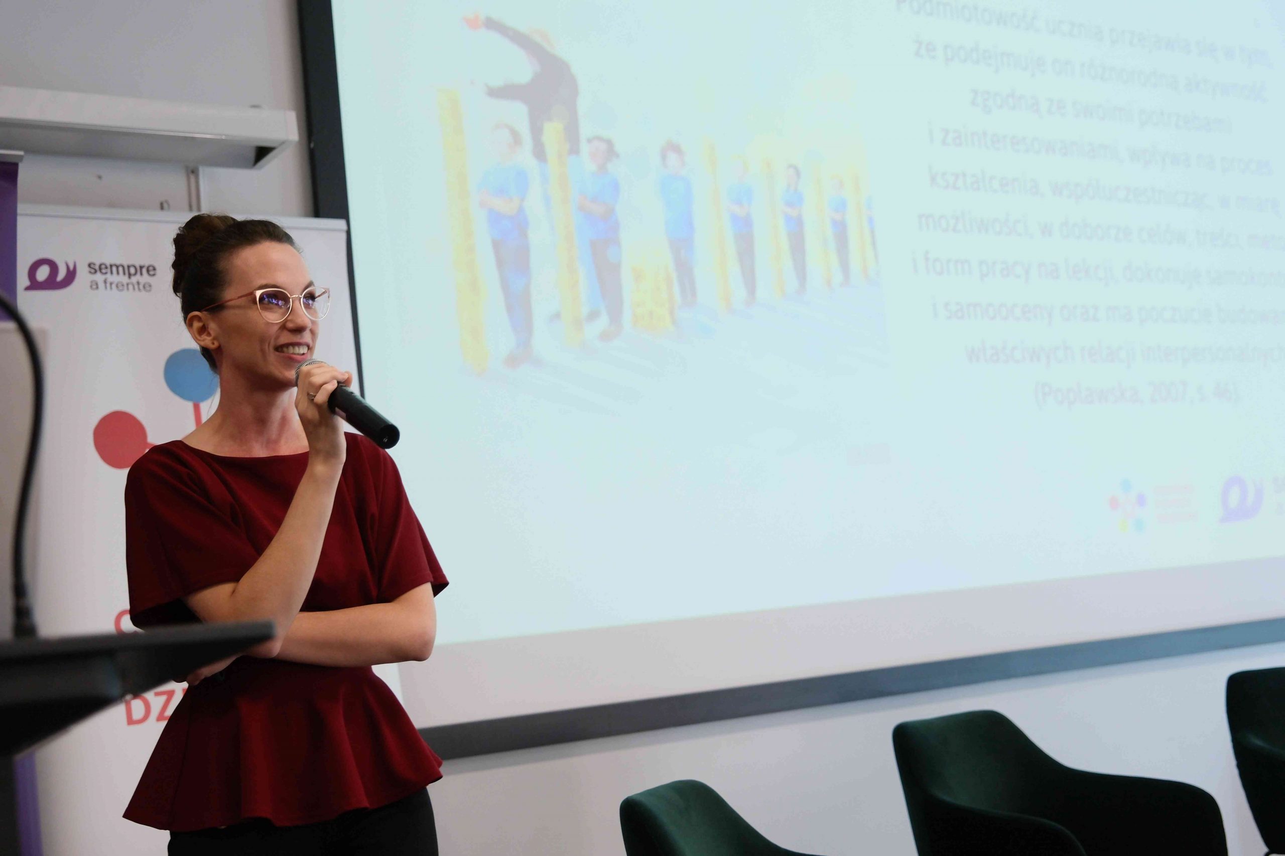 Wydarzenie skierowane było do środowisk nauczycielskich. Specjaliści z Polski i Europy (jedna z prelegentek przybyła do nas aż z Finlandii) podzielili się swoimi doświadczeniami i przekazali uczestnikom wiele praktycznej wiedzy. Program obejmował również warsztaty, które poprowadziły specjalistki z Fundacji Sempre a Frente. Wszystko to, aby przygotować pedagogów do skutecznego wspierania dzieci i młodzieży w kryzysie, dbając jednocześnie o własny dobrostan.