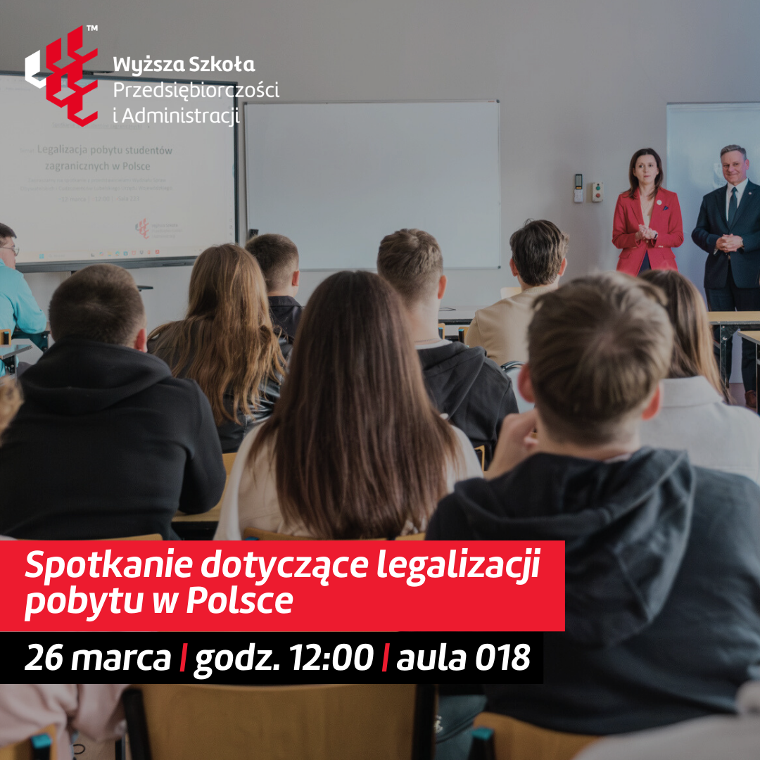 Zapraszamy studentów Wyższej Szkoły Przedsiębiorczości i Administracji w Lublinie na spotkanie poświęcone legalizacji pobytu w Polsce w świetle obowiązujących przepisów.