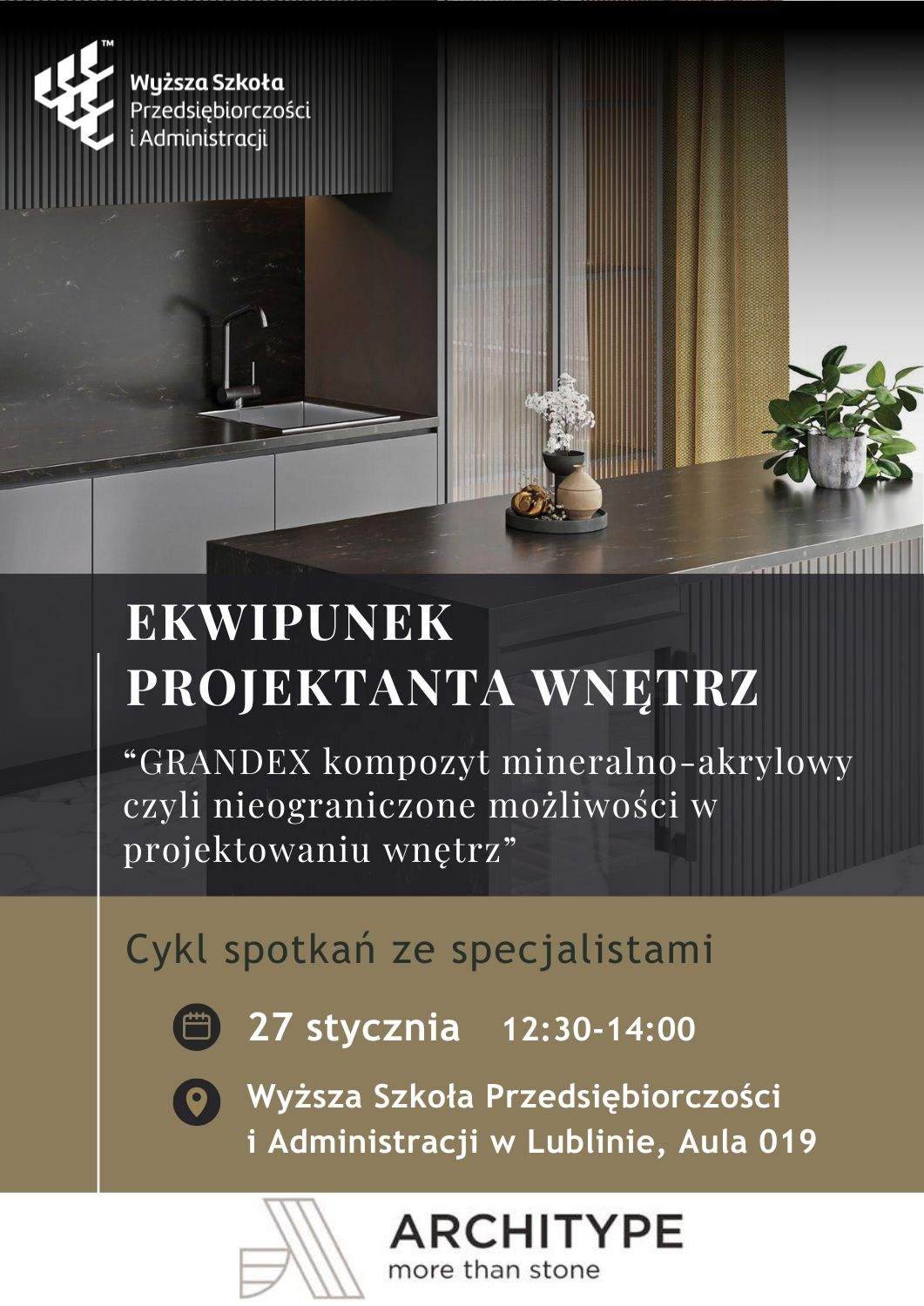 aula 018 Zapraszamy na kolejne spotkanie z cyklu EKWIPUNEK PROJEKTANTA WNĘTRZ KIEDY I GDZIE? 16 marca (sobota), godz. 11:00-12:00 - WSPA, aula 018 Do zobaczenia!